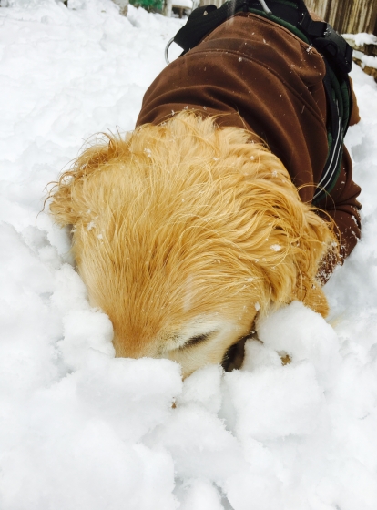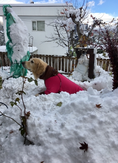 2016年11月07日 05時13分 雪。雪。 再び積もった雪、お顔で雪の感触を楽しむのが大好きなラビです。 もう、楽しくて楽しくて〜 毎日の日課に雪遊びが追加されました。 庭仕事や現場の作業がなくなっても庭に出て、遊びに付き合います(笑) 2日目、さらに湿ったドカ雪となりました。 車道、歩道、空き地の境目はなくなりお散歩は雪漕ぎです。 雪山にのぼるも、足元の雪はまだ締まっていないので埋まります(笑) 雪だるまとパチリ(o^^o) 12月並みの寒さが続きストーブ料理も続きます。 里芋をいただいたので煮物にしました。 コメント(0)