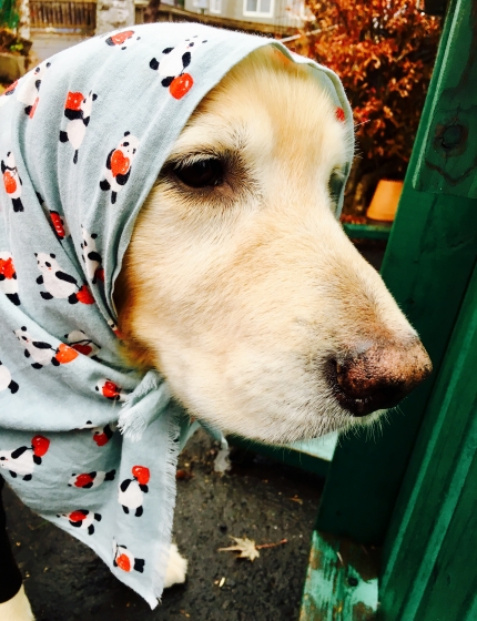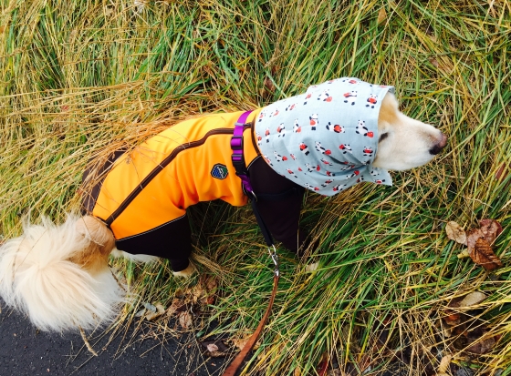 こうなったらほっかむり散歩です。