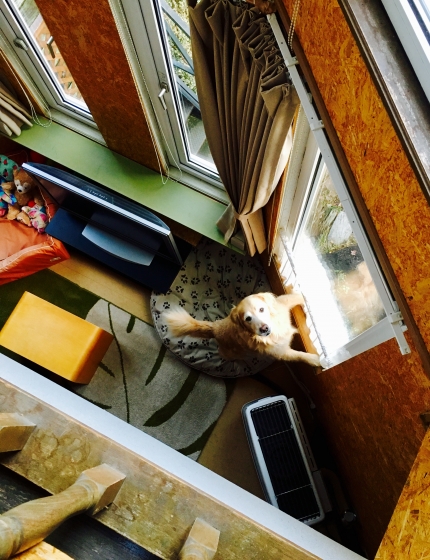 吹き抜けから眺める私。