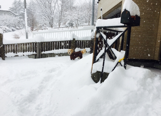 車庫や玄関前にすぐ避難して前脚を浮かせ、、、
