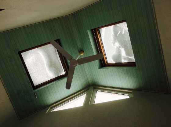 工房の上の天窓に積もり