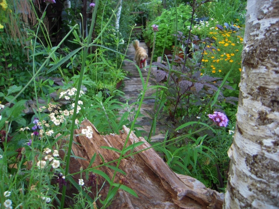 ラビが走り回る夏の庭、