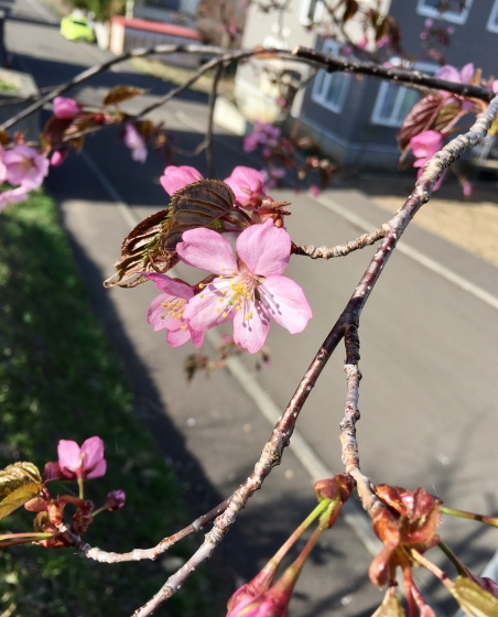 庭の桜が咲き始めました。