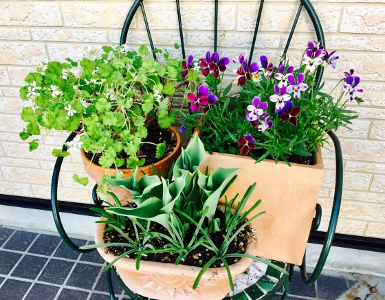 宿根草が入っているコンテナと