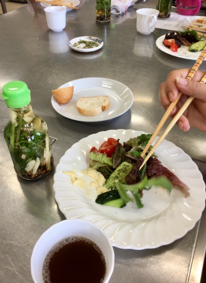 我が家の庭であさ摘んだハーブたちを