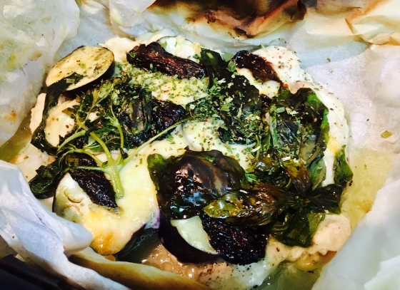 鶏胸肉、ナス、チーズ、ドライトマトに