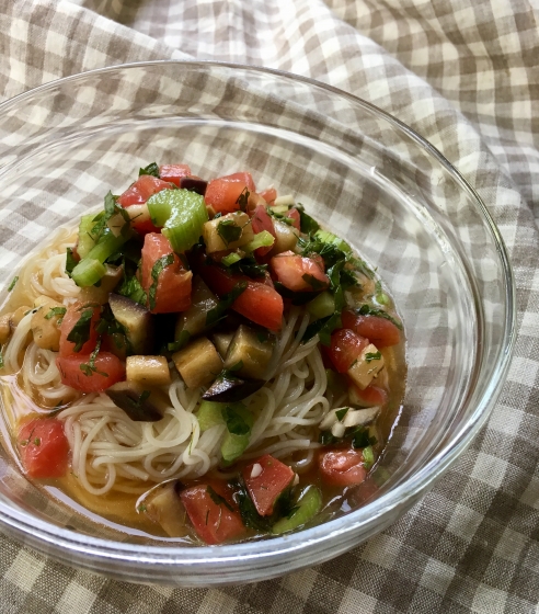 かりの十八番のハーブたっぷりマリネドレッシング。