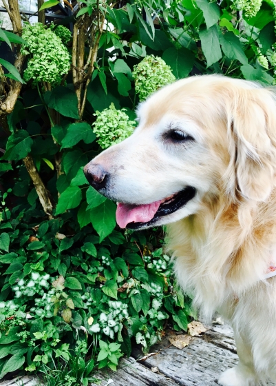 お散歩途中草が触れたり
