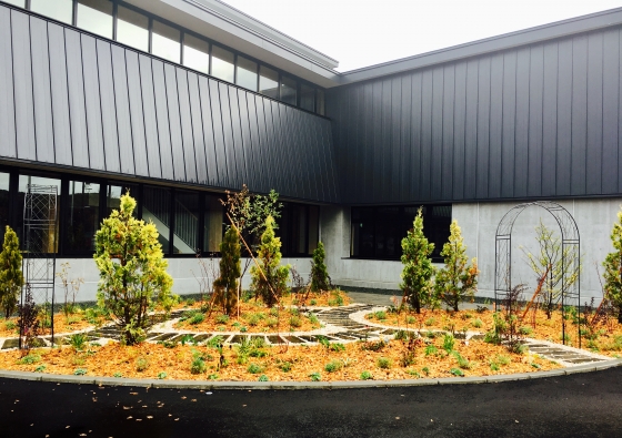 体育館前のガーデンの様子も
