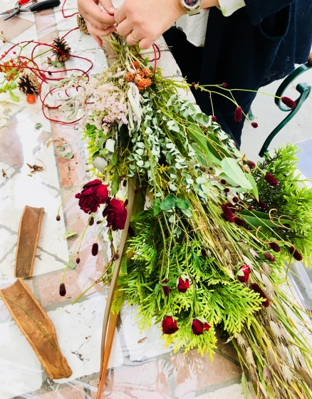 花の牧場でスワッグ作り講座でした。