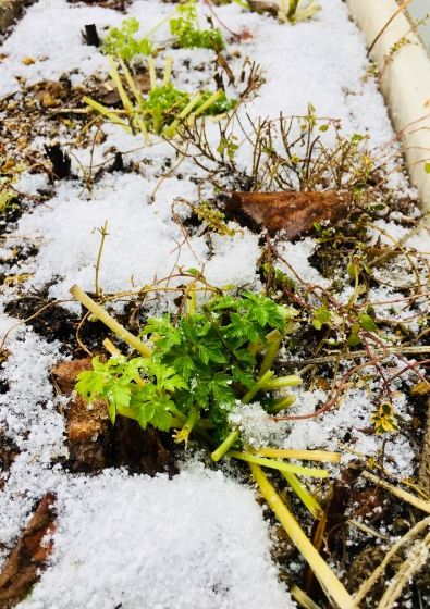 雪の下に隠れていたハーブが