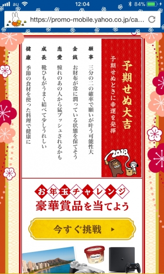 2018年01月02日 05時28分 やっぱり雪 天気予報通り、元日は雪となりました。 湿っぽくて雪だるまを作りやすい雪質、除雪が入っていない道路のお散歩は歩きづらいけど筋力アップには役立つかも(笑) ヤフーのおみくじは予期せぬ大吉(o^^o) 今年はどんないいことがあるかな楽しみです。 コメント(0)