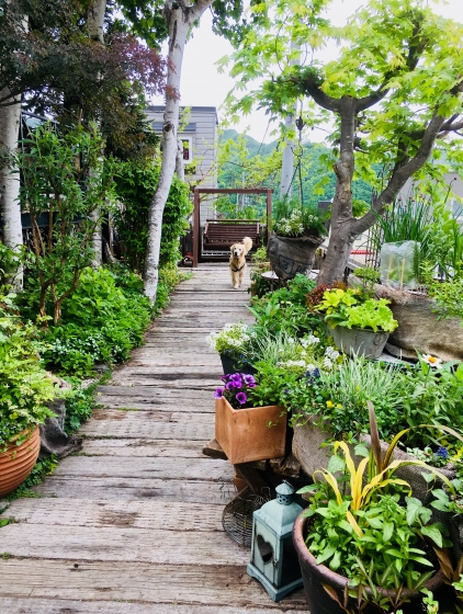 庭の植物の成長が