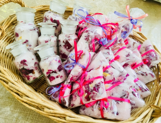 お塩がバラの花びらの水分と香りを