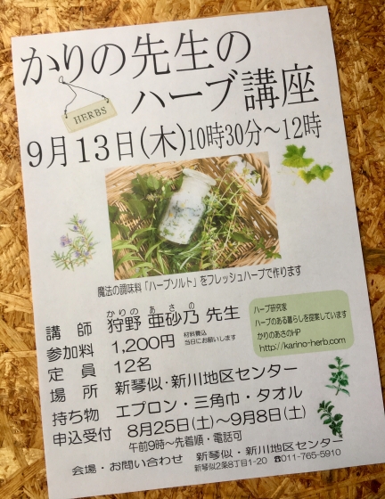 ハーブらいふ講座は9月は2回(╹◡╹)
