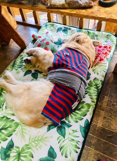2018年11月02日 06時16分 連日のリース作り アジサイリースに続いてオーダーリースの製作も始めました(╹◡╹) 数種類のヒバでベース作りから〜 少しずつローズヒップや松ぼっくりを足して、、、 香りも大事!シナモンも追加。完成待まではまだまだ。 こちらは淡い色味でのオーダー。 晴れたり雨が降ったり虹が出たり目まぐるしく変わるお天気を眺めながらリース工房で過ごす時間。 足元にはラビ(笑) ちなみにお昼寝マットは敷いてあげましたが枕代わりの花柄バスタオルやお人形はラビ持参(*^▽^*) コメント(0)