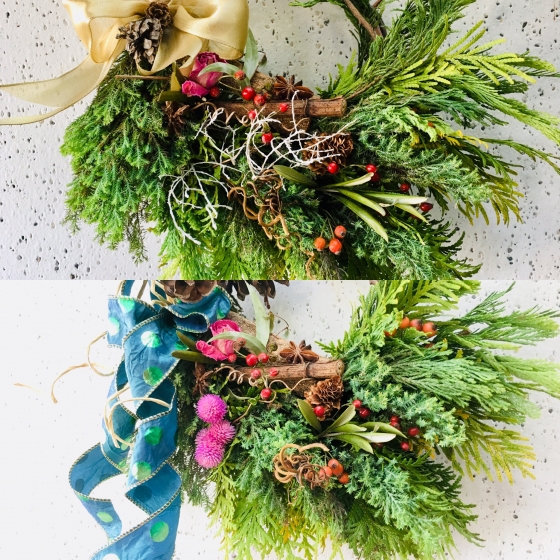 自宅でのリース、スワッグ、卓上飾りの
