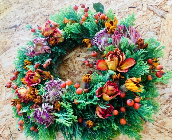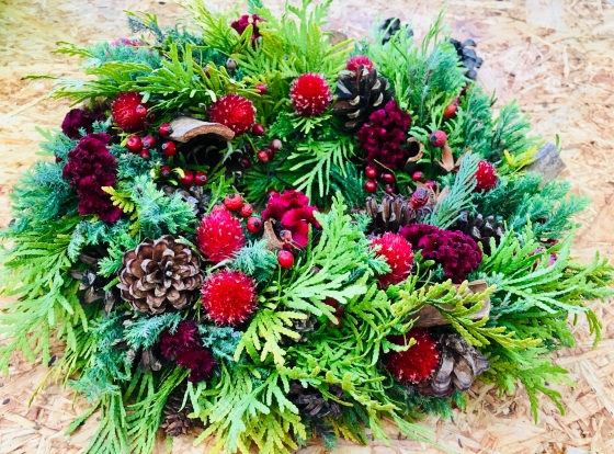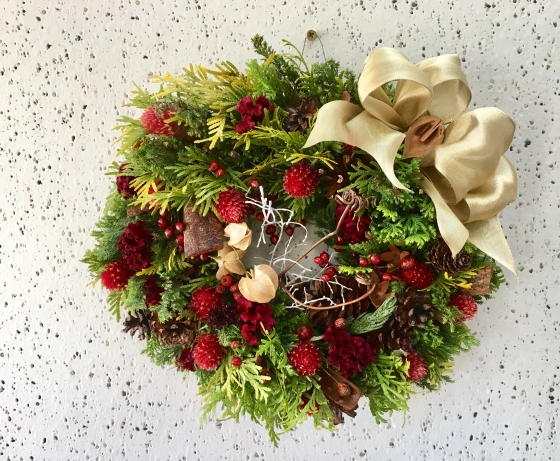 製作途中だった赤メインのリース、