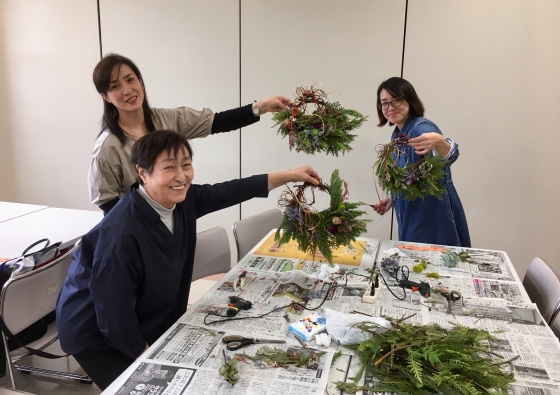 2018年11月29日 05時27分 さとらんどで さとらんどでリース講座でしたみなさんどんどんすてきな作品を完成させていきましたよー ぐるっとヒバを一周させなくてもかわいいリースになるんです わたしもとっても楽しかったです。 今シーズンのさとらんどでのハーブ講座はこれで終了しました。 毎回たくさんの皆様に申し込み頂きありがとうございました。 すぐ定員になり参加できなかった方、ごめんなさい またお会いしましょうね コメント(0)