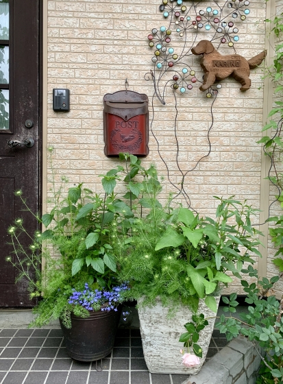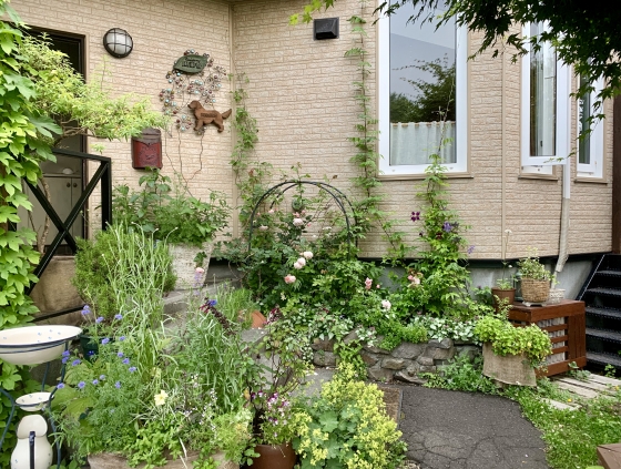 玄関まわりはまだただの草のようなものばかり(笑)