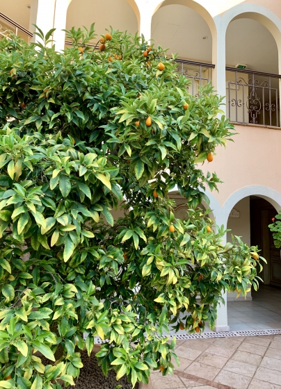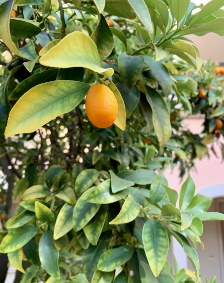 中庭には金柑らしき柑橘の木。