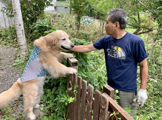 庭のお花をロンとみふぃにお供えします。