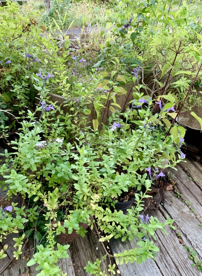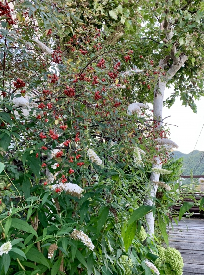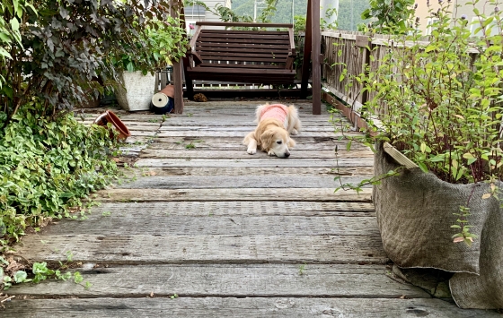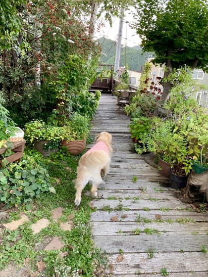 ひんやりする庭を楽しそうに歩き回るラビッヂ。
