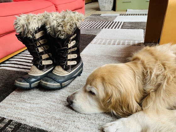 暖かいブーツに滑り止めを装着。