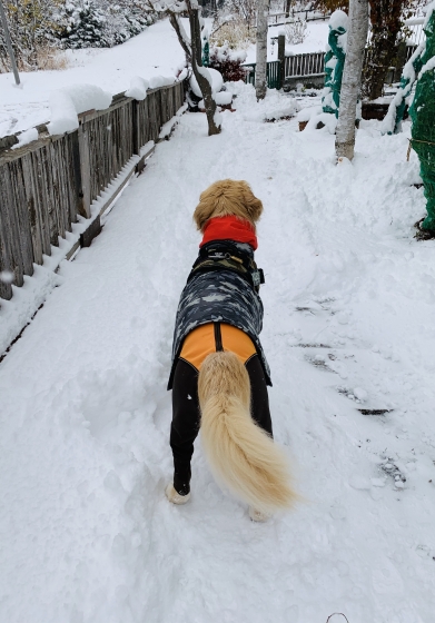 新雪の中を歩くラビ。