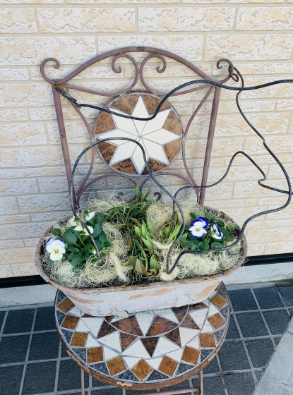 両脇にビオラを植え込みました。