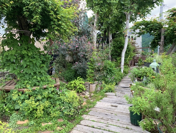 2020年06月24日 06時37分 日々変わる 毎日、風景が変わっていく今時期の庭のそのスピードはすごいです。 朝と夕方でも全然違うくらい花が咲いたりつるがのびたり自分の感覚だけがスローペースみたいです(苦笑) 枕木デッキの通路をみるとにっこり笑うラビッヂがいる、 姿はみえなくても気配を感じます。不思議ですね。 最近はラビッヂのかわりに猫が庭にいます。。。 この件はすこし先がみえてきたらアップしたいと思います。(猫アレルギーなので飼う訳ではありません) (о´∀`о) コメント(0)