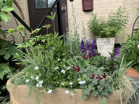 ラビを偲んで植えた寄せ植え。