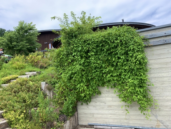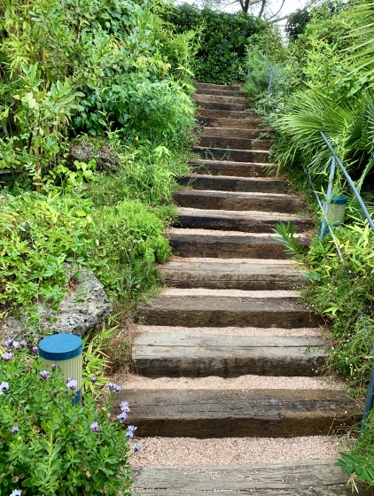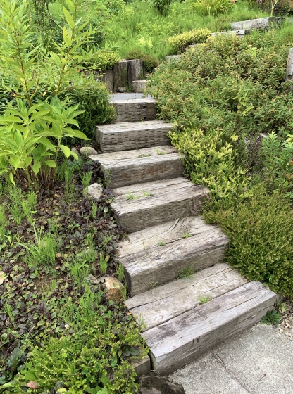 2020年08月27日 06時46分 オチガビワイナリー オチガビワイナリーへ出向きました。 秋が近づいてきているそんな空気感でしたがまだ夏も同居していてもわっと暑い、そんな日でした。池のそばは涼しい! レストランやワインショップがある建物おしゃれですねー レストランのメニューは予想していたよりリーズナブルな感じでした。 どこかで見覚えのある雰囲気、 そう、昨年の南仏での宿泊先ホテルの庭。植物に囲まれた階段、大好きだなー 蔓性植物好きにはたまらない風景。 斜面に広がるぶどう畑。 いろいろ勉強になる景色がいっぱいでした。 コメント(0)