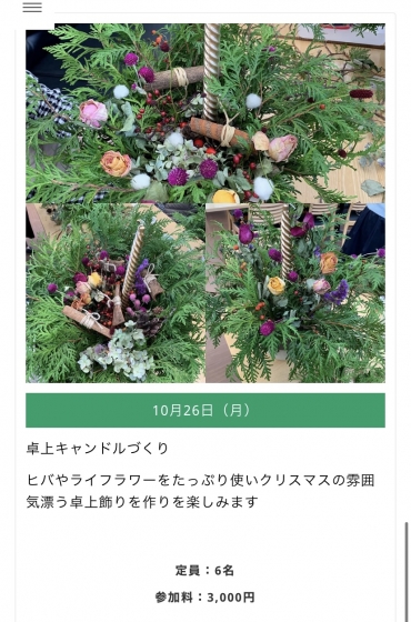 毎年人気の卓上キャンドル飾り講座、今年も開催します。