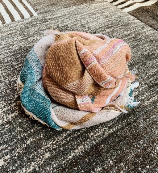 昨年、春夏用に購入した黒ベース×赤やグレーの色合いの