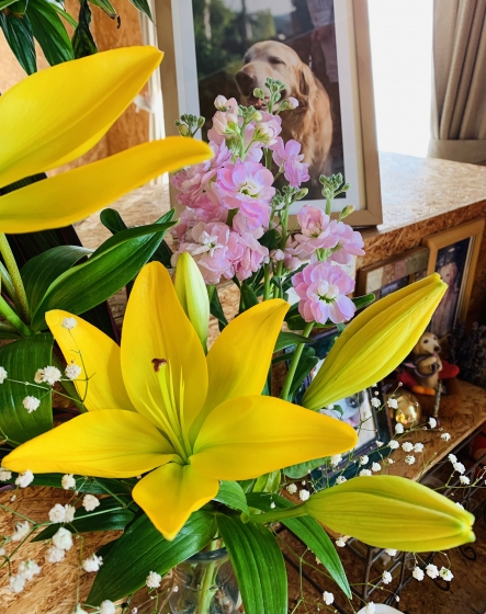 珍しく黄色い百合の切り花を見つけて