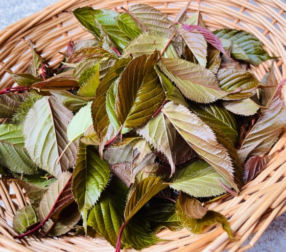 桜の葉を摘んで