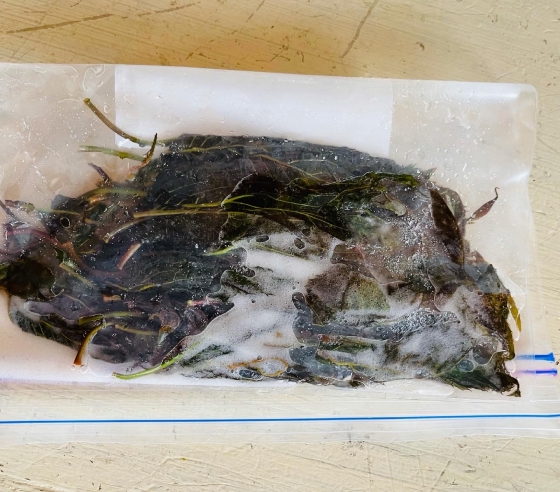 柔らかい葉を摘んで塩漬けにしました。