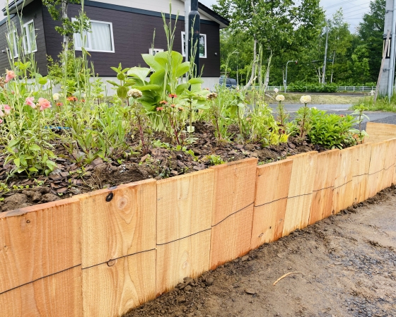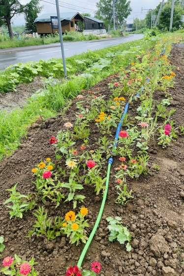 2021年06月21日 06時04分 植栽その後の様子 バタバタしていてアップが遅れてしまいましたが1週間前、ニセコのガーデン各所の様子を確認してきました。 スタッフ手作りの土留めや灌水ホース設置ができていて植栽したお花たちもしっかり根付いたようで背が伸びていました。これからさらに伸びて分岐して花数が増えてモリモリになる予定。 レストランのテラス席側に新たに造成した植栽エリアは道路に面していてヴィラルピシアの看板とともに目印になるように植え込みをしました。 次回はリアルタイムでアップできたらと思います(*^_^*) コメント(0)