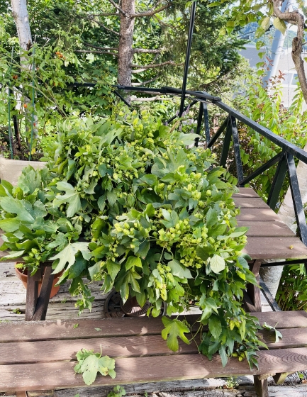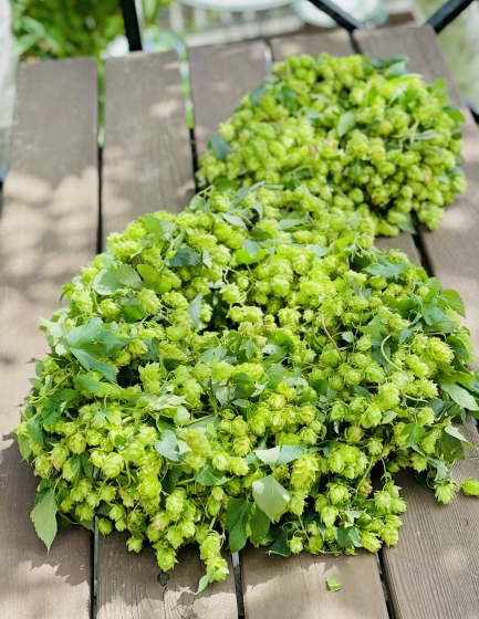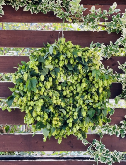 2021年08月25日 06時08分 ホップ ホップを収穫しました。 今年は実が少ない。猛暑が影響したかな。 50センチ直径と30センチ直径がひとつずつのリースを作ってみました。 実数は少なかったけどひとつのサイズは大きめのものが多かったかも。 ビールの香りが。。笑 毎年、作り続けるホップのリース。 来年はたくさん実をつけてね。 コメント(0)