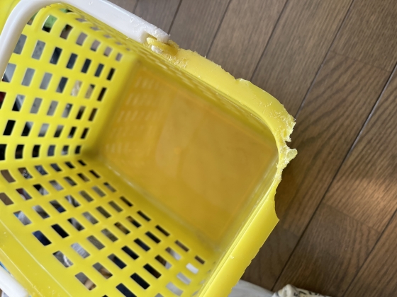 そんな中、端がカミカミされたラビのおもちゃ入れが