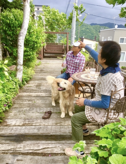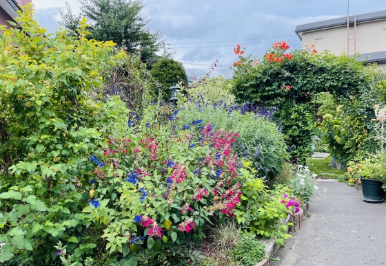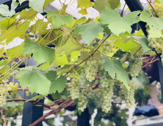 庭にスモモ、ぶどう、グスベリー、いちごなど