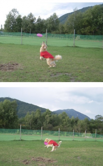 2021年09月24日 06時41分 フリスビー ラビはフリスビーを楽しんでいた、と以前アップしたら 想像できない〜とたくさんの方のお声が。笑笑 わかりづらいけど こんな風に空中キャッチもお手のもの(^^) 私が上手に遠投できない時は不満げな顔でした〜 ロン、みふぃはフリスビーは咥えて破壊するものだと認識していたので遊び方が違っていました。ぷぷぷ。 僕もなかなかやるでしょ。 ラビ子より コメント(0)