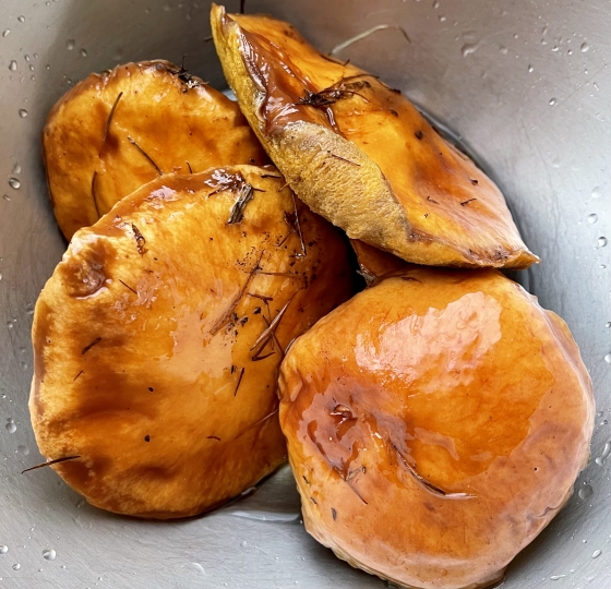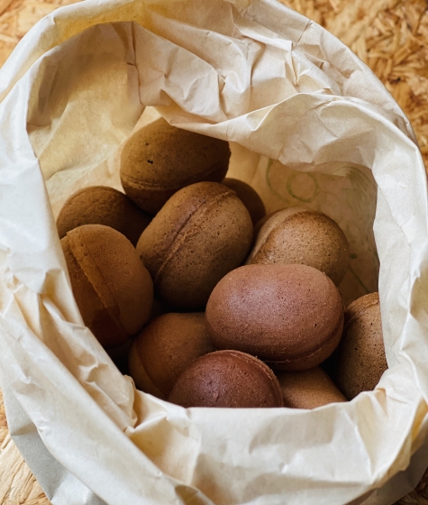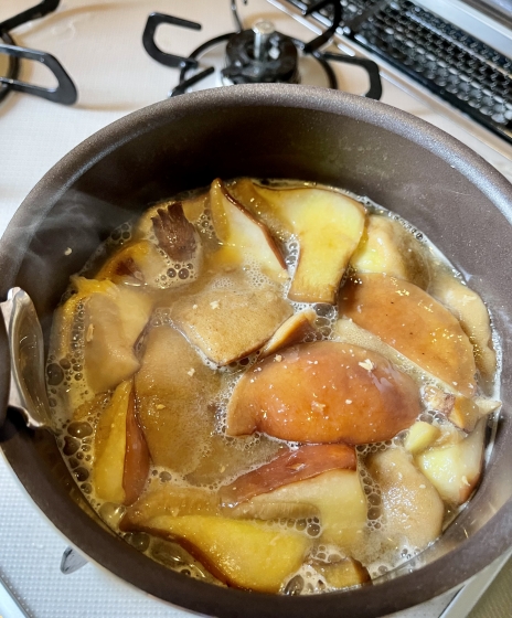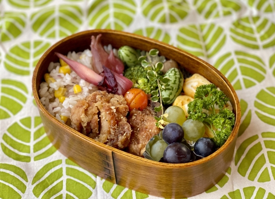 庭でとれた野菜やぶどう、溢れ種で育つ赤紫蘇を入れた