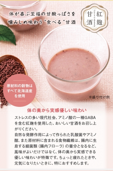 紅麹甘酒(酒粕不使用)がおすすめです。