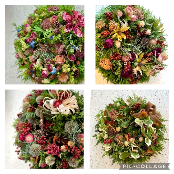 2021年11月06日 07時00分 連日リース 連日、在宅時はほぼリース作りです。 今月中にかなりの数をつくりあげなくてはいけません。今年は30センチ以上のサイズのオーダー、赤系の希望が多いですよ。 ずっとコロナ禍が続き鬱蒼とした気持ちで過ごしてきた分明るい色合いで元気を必要としているのかな、と思ったりしています。 土台をしっかりみっちり作ると重くなるのですが(苦笑)飾りつけがしやすくなり型崩れしないので大事な作業です。 写真のリースはほとんど発送、納品が済みました。 まだまだ作り続けますよ〜 コメント(0)