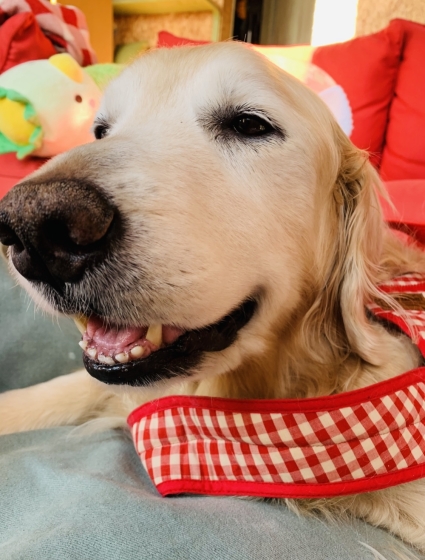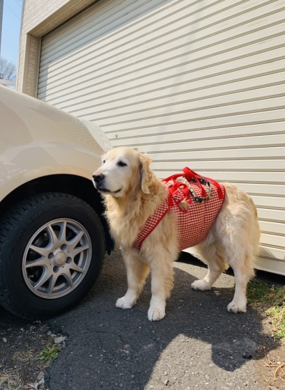 お花に囲まれたゴルゴルとワンコたちの中に