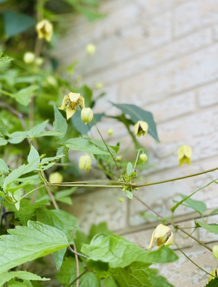 黄色いベル型のクレマチス、