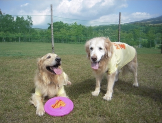 フリスビーをするラビに同伴するように