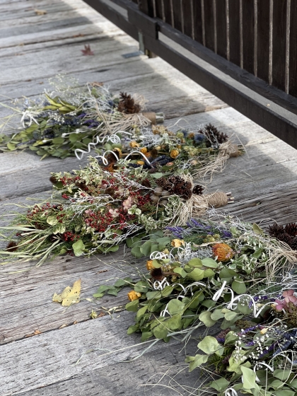 リースの花材のご紹介をしています。